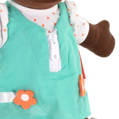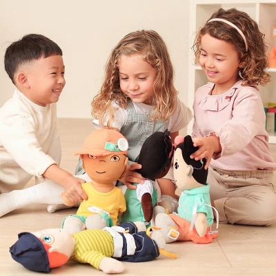 The diversity fastening doll offers children many ways to practice fine motor skills. Through zippers, buttons, snaps, buckles, and shoe laces, children will learn to undress and dress themselves. This doll will also assist students in developing respect for diversity of genders and races. This doll can also help users learn about their community and others around the world. Doll measures 15″.