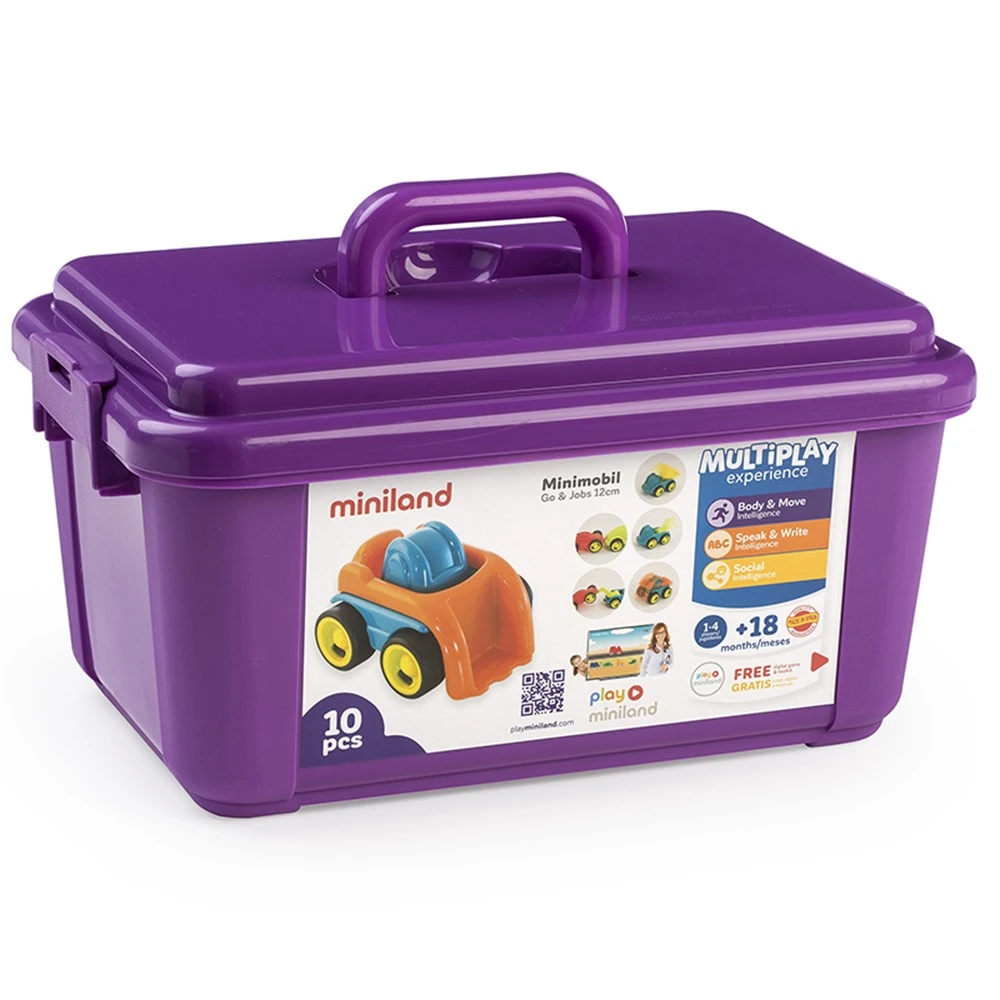 Excellent teaching resource to stimulate learning related to the physical and social environment. Made of flexible, durable plastic with non-removable safety wheels. Reusable containers. All with silent wheels. This is a set of ten brightly colored and different vehicle types. They include 1 formula, 1 car, 1 pick up, 1 tractor, 1 police car, 1 dump truck, 1 rescue, 1 digger, 1 ambulance, and 1 fire truck. The wheels are dark and soft-sounding.