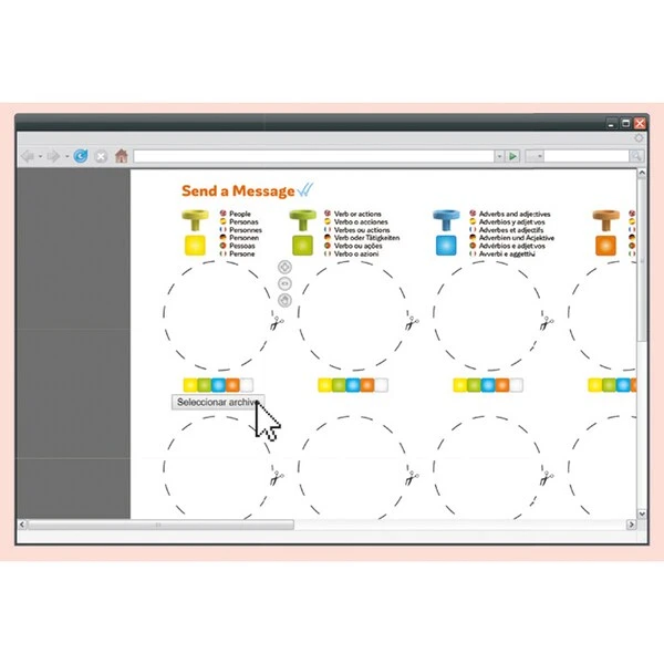 Enables kids to create messages in a cooperative and manipulative manner, promoting the structuring of children ́s language. It promotes the development of communication skills and helps develop language, the acquisition of new vocabulary and the structuring of phrases, stimulating oral production and active listening among equals. A first approach to reading with a playful communicative focus. Contents include 4 game boards, 64 pegs, 105 pictures and 1 teaching guide.